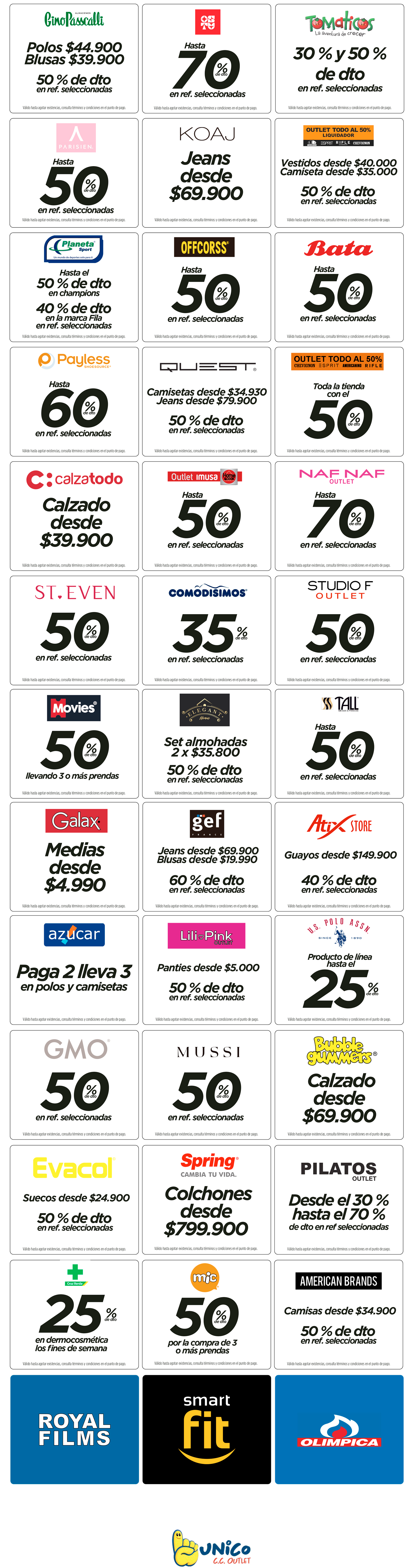 Aprovecha promociones reales en Villavicencio: marcas top con descuentos permanentes. Ven hoy a Unico Outlet y ahorra en tus compras.